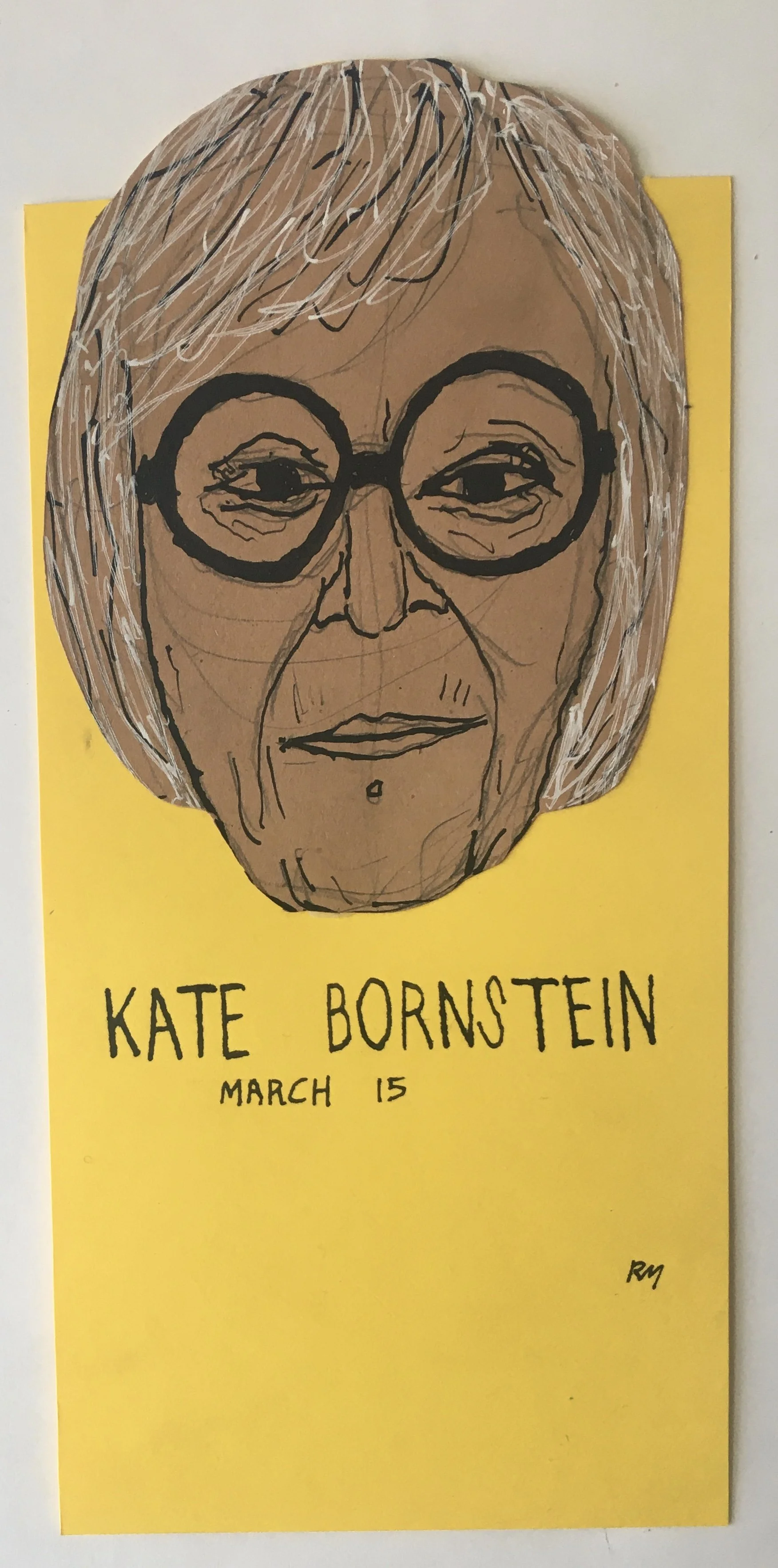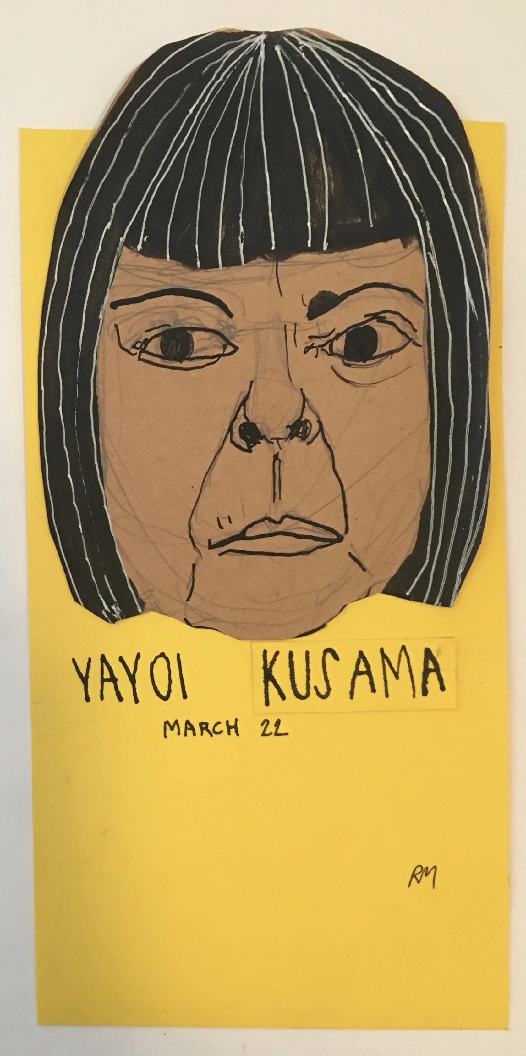 The face is cut out and attached to a piece of 4” wide yellow card stock.